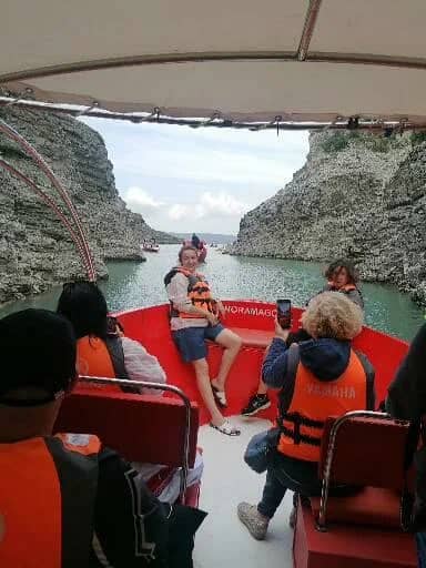 •  Катание на катере по бирюзовой реке Сулак или Черкесскому  водохранилищу